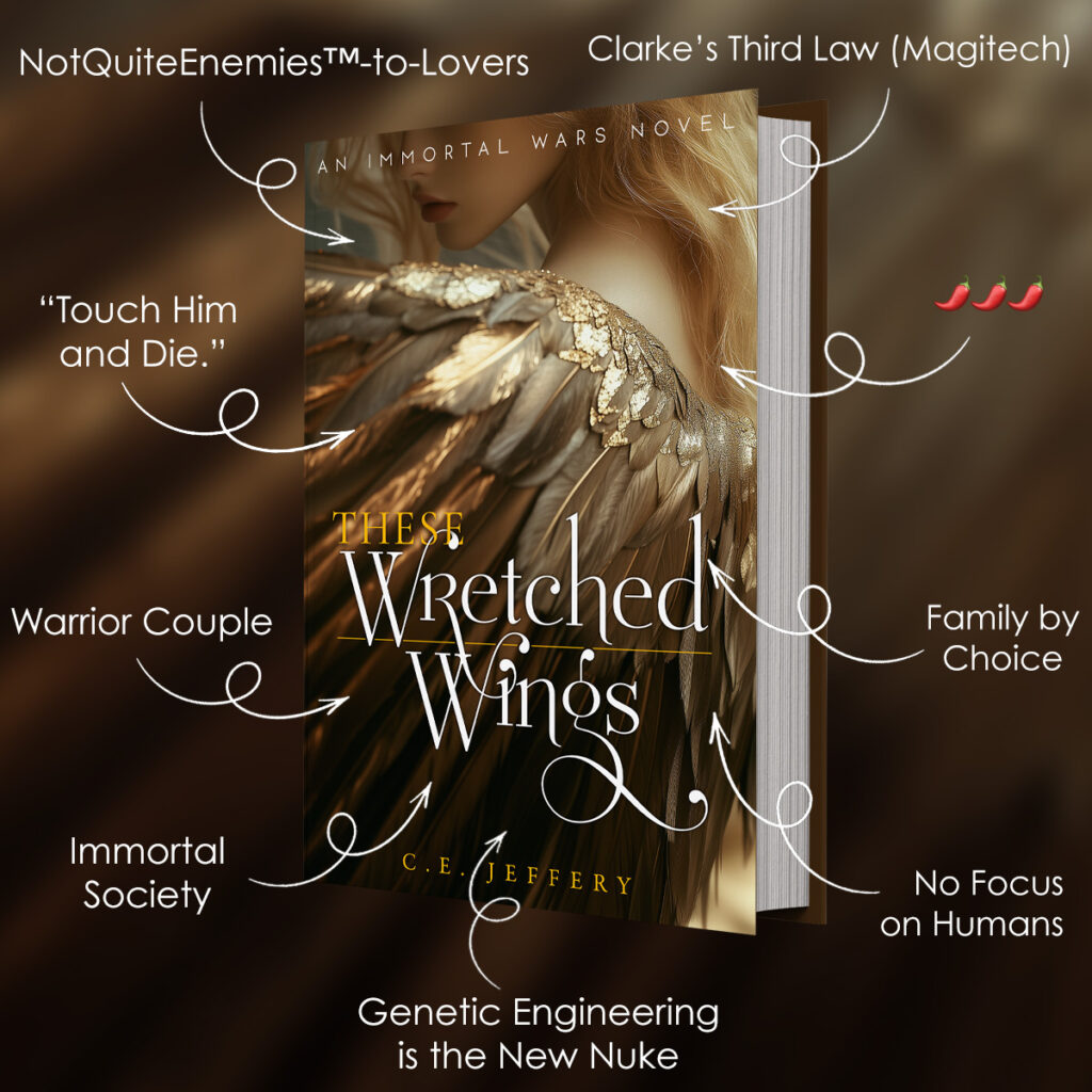 C.E. Jeffery (CJ) is the author of paranormal and fantasy romance novels such as the Songs of Nendavia series and These Wretched Wings. She also runs writing forum Wacky Writers where writers can interact with other members of the writing community.