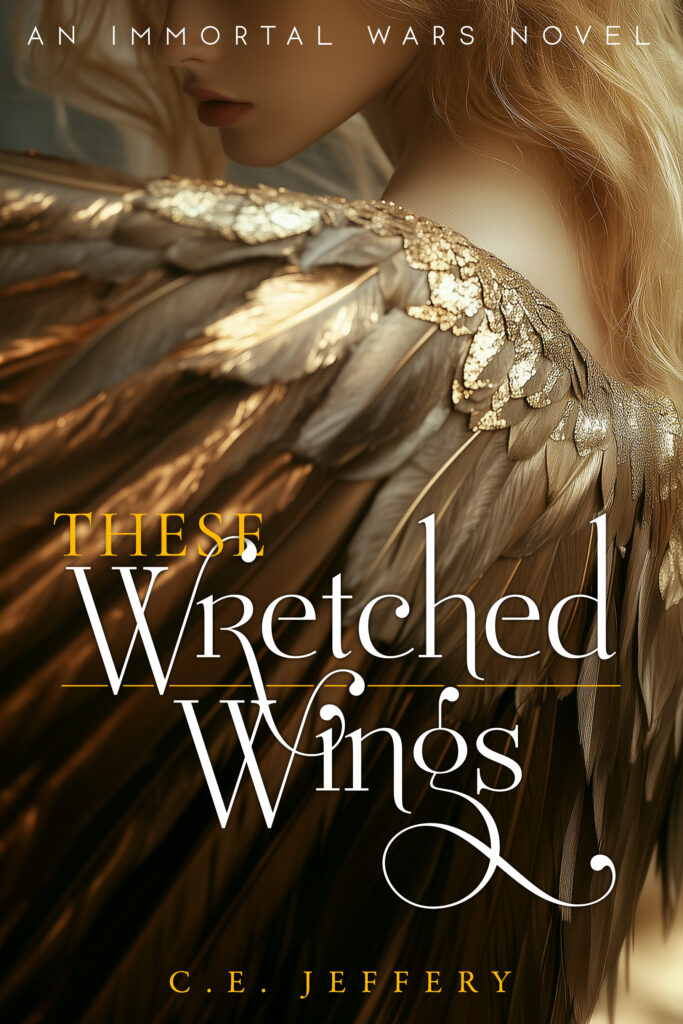 Sarah J. Maas’s House of Earth and Blood meets Nalini Singh’s Guild Hunter series in These Wretched Wings: a standalone modern science fantasy novel with romantic elements. Featuring multiple alternate worlds while primarily set in our own, These Wretched Wings follows a pair of winged immortals slowly burning through a not-quite-enemies-to-lovers romance while fighting internal and external demons to protect their friends, families, and home world.